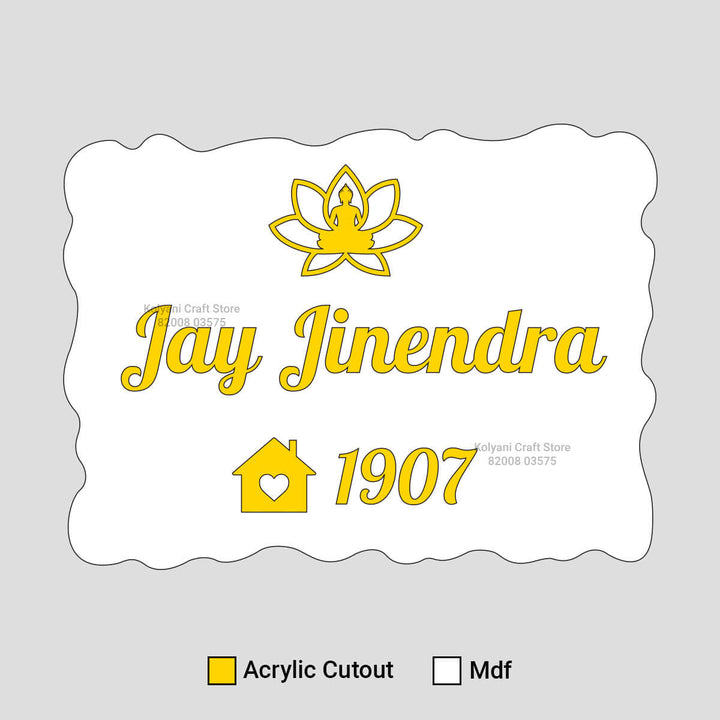 Custom Acrylic Cutout for Rectangle Jai Jinendra Name Plate With MDF - A