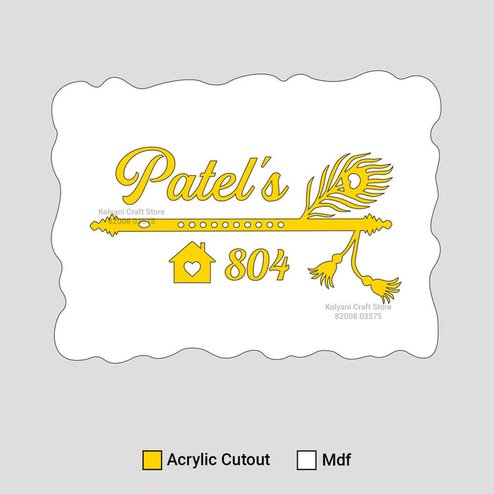 Custom Acrylic Cutout for Rectangle With Bansuri Name Plate With MDF - B