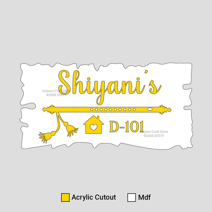 Custom Acrylic Cutout for Rectangle With Bansuri Name Plate With MDF - C