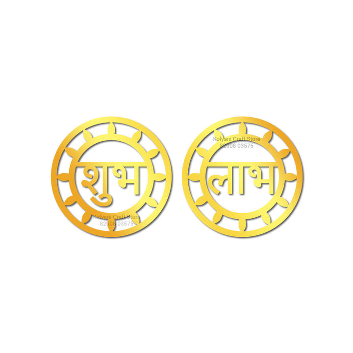 Designer Round Shubh Labh Acrylic Cutout Gold - A