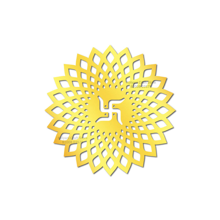 Designer Swastik Round Acrylic Cutout Gold
