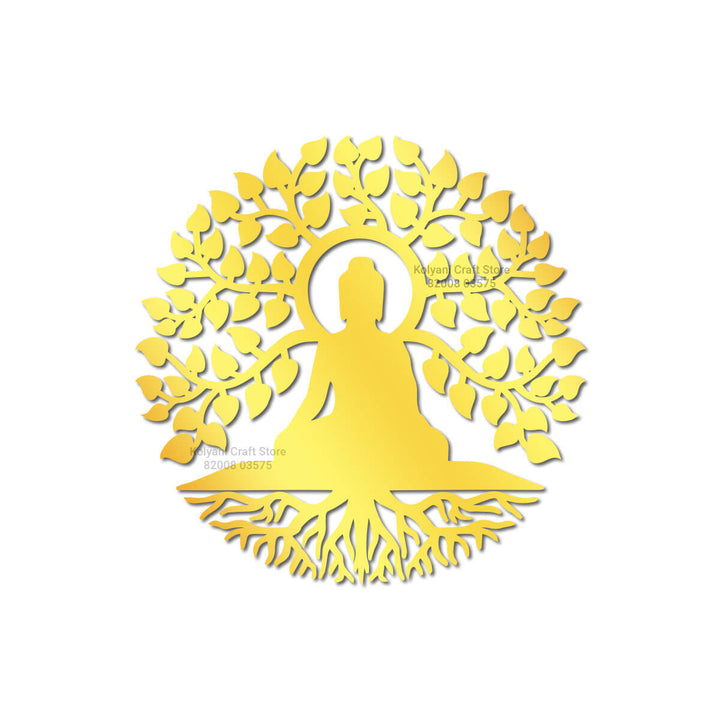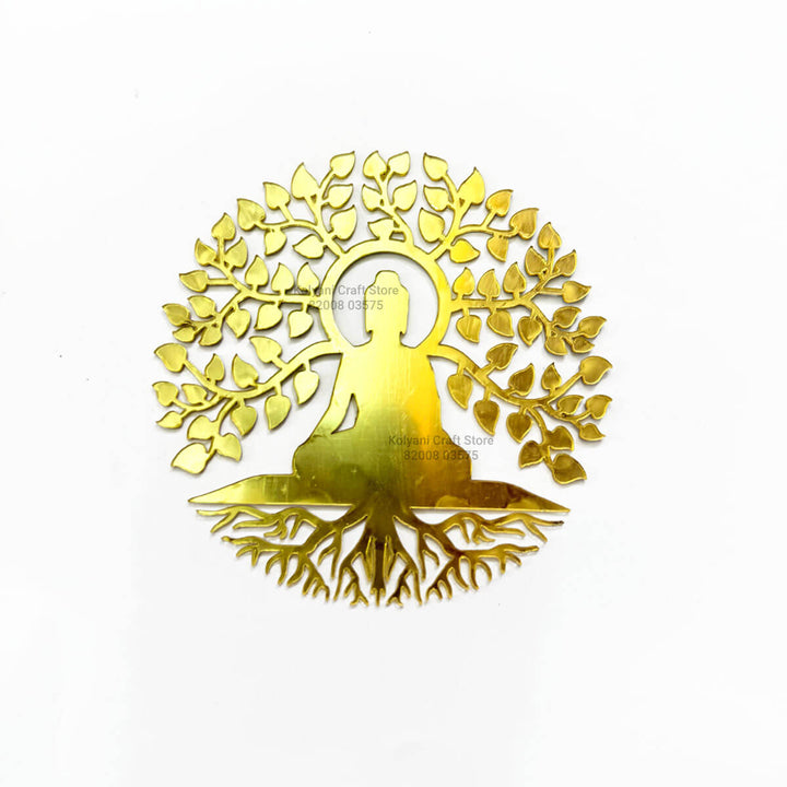 Mahavir Swami With Tree Acrylic Cutout Gold